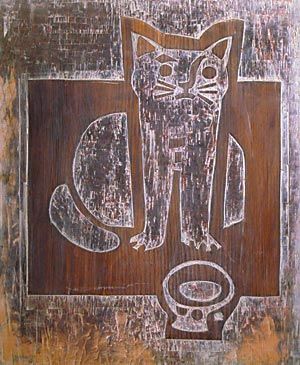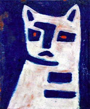 Katze blau/weiss | H x B 25 x 21 | Keramik, glasiert