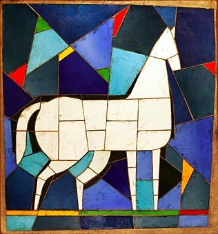 Pferd | H x B 101 x 95 | Glasmosaik/Beton