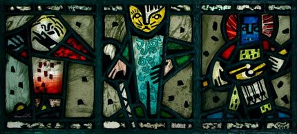 "Fasnacht" | H x B 39 x 85 | GLM, bleiverglast, geätzt, SLM, Silbergelbauftrag