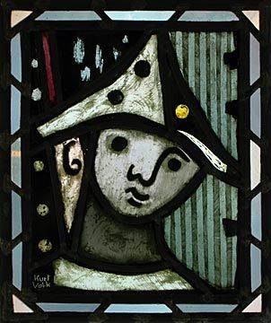 Harlekin/Clown | H x B 48 x 41 | GLM, bleiverglast, geätzt, SLM, Emailfarbe
