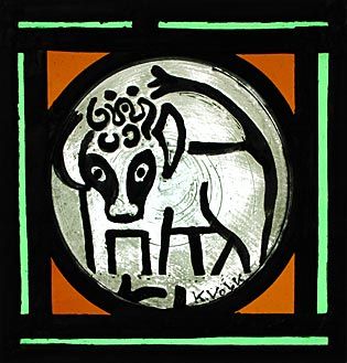 Krebs (Sternzeichen) | H x B 29 x 32 | GLM, bleiverglast, geätzt