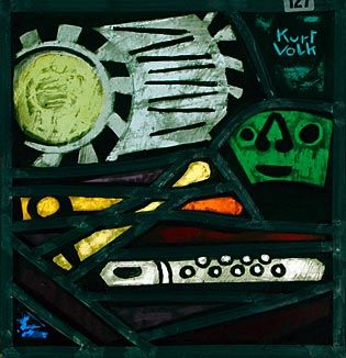 "Fasnacht Stilleben" | H x B 32 x 31 | GLM, bleiverglast, geätzt, SLM, Emailfarbe