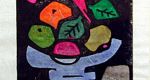 Fruchtschale | H x B 43 x 43 | Linoldruck koloriert/Japanpapier