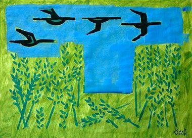 Fliegende Enten | H x B 76 x 106 | Gouache/Papier