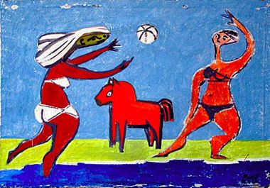 Freizeit am Wasser | H x B 78 x 109 | Gouache/Papier